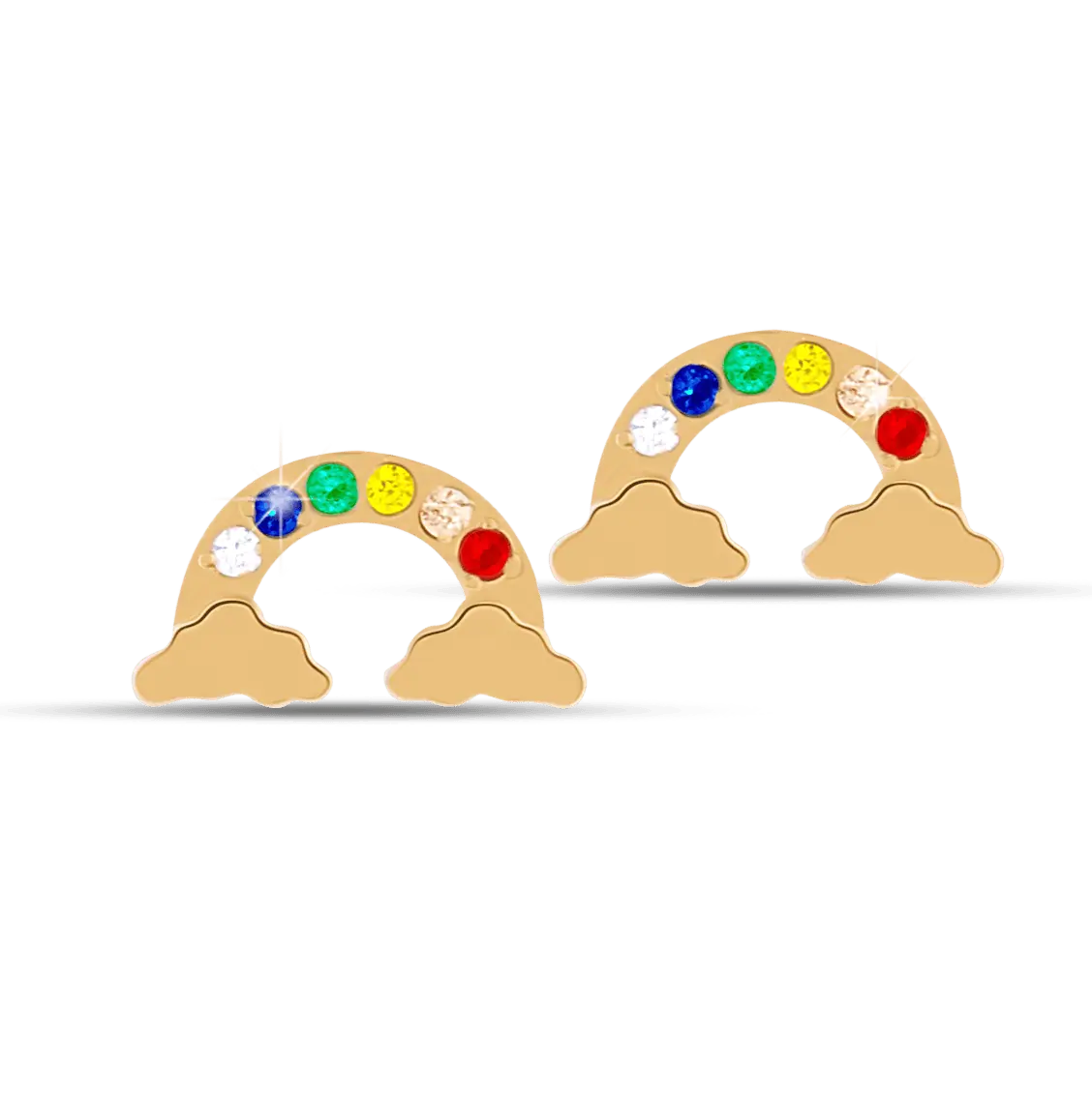 Magici orecchini anallergici a forma di arcobaleno con cristalli colorati. Realizzati in acciaio chirurgico nickel tested con finitura dorata, racchiudono tutti i colori dell’iride in un design che parla di sogni e fantasia.