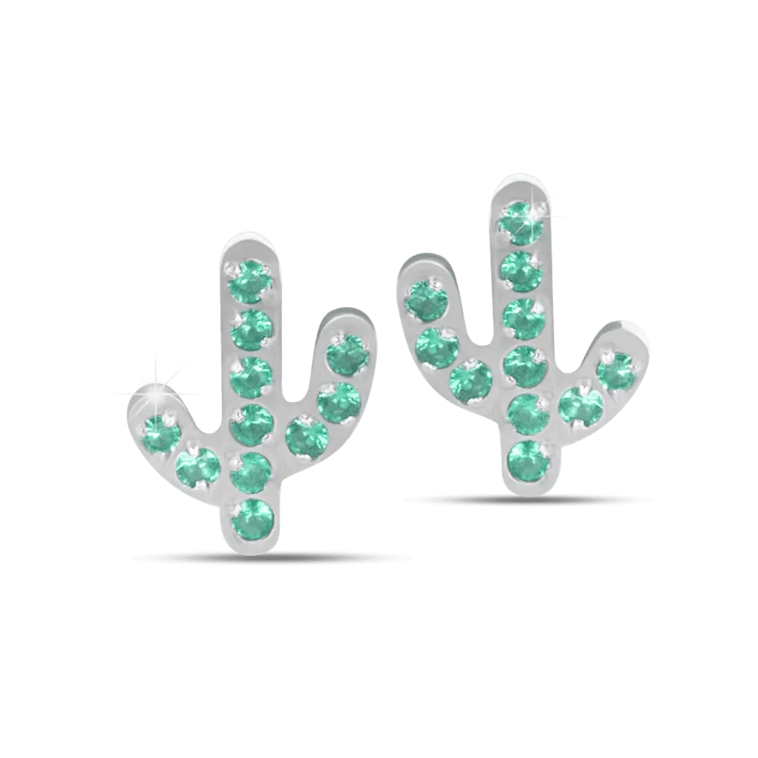 Delicati orecchini anallergici a forma di cactus, impreziositi da luminosi cristalli verde smeraldo che donano vivacità e brillantezza. Realizzati in acciaio chirurgico nickel tested, uniscono sicurezza e stile in un design giocoso e naturale.