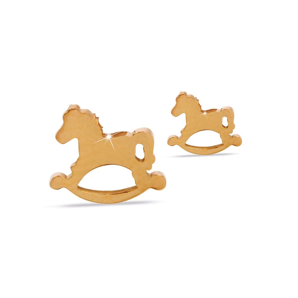 Gli orecchini a lobo con un piccolo cavallo a dondolo sono perfetti per essere indossati ogni giorno: di colore oro rosa, si abbinano perfettamente ai colori tenui donando quel tocco in più a ogni look. Medical Jewels pensa anche alla salute: tutti gli orecchini per bambina sono anallergici e nichel free.