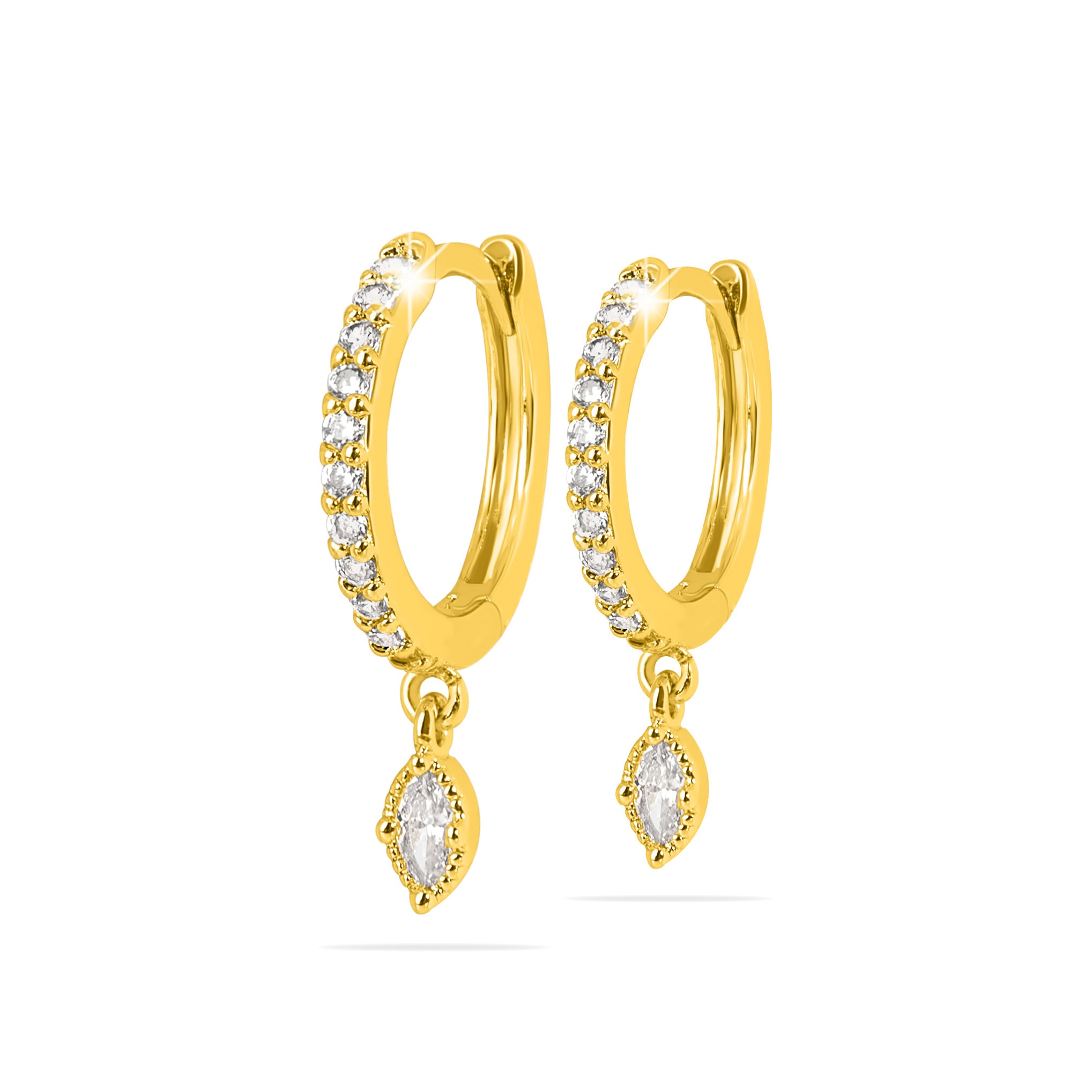 Questi orecchini anallergici presentano un design a cerchio impreziosito da una serie di incastonature brillanti lungo il perimetro esterno. Da ogni cerchio pende un elemento a forma di rombo, anch’esso decorato con un’incastonatura centrale. La finitura dorata aggiunge un tocco di eleganza, rendendo questi orecchini una scelta appropriata sia per l’uso quotidiano che per occasioni speciali. L’acciaio chirurgico assicura la compatibilità anche con le pelli più sensibili, offrendo un’opzione di stile accessibile e confortevole.