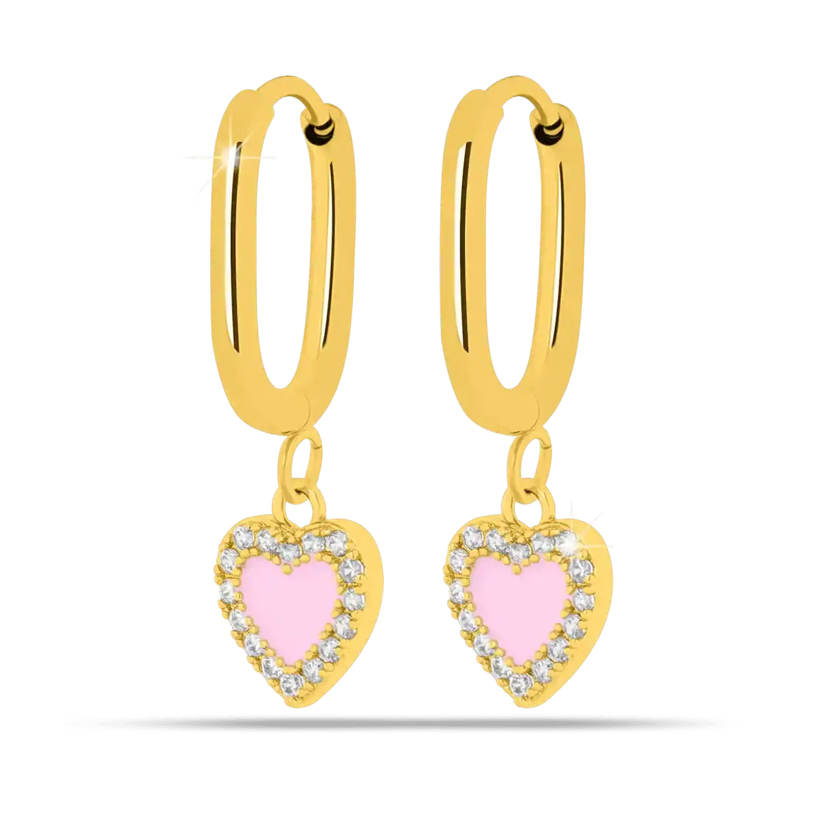 Lasciati conquistare dal romanticismo di questi orecchini anallergici dove la dolcezza del cuore rosa incontra la brillantezza dei cristalli. Il pendente, delicatamente sorretto da un cerchietto in acciaio chirurgico anallergico con finitura dorata, cattura la luce e lo sguardo.