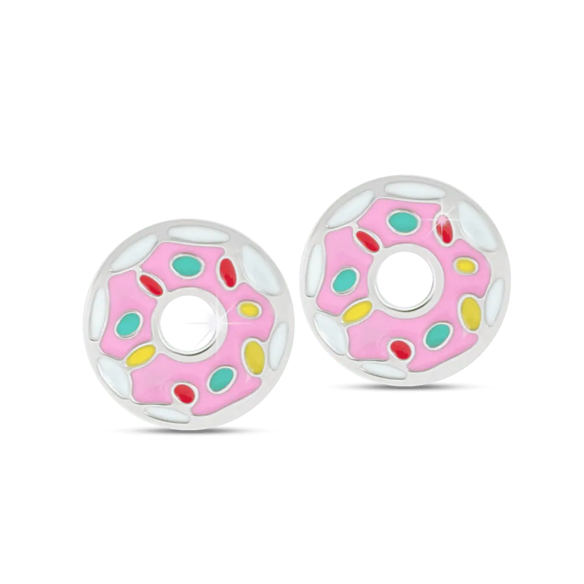 Deliziosi orecchini anallergici a forma di ciambella glassata in rosa pastello. Realizzati in acciaio chirurgico nickel tested, sono decorati con piccoli confetti colorati che creano un effetto vivace e allegro.