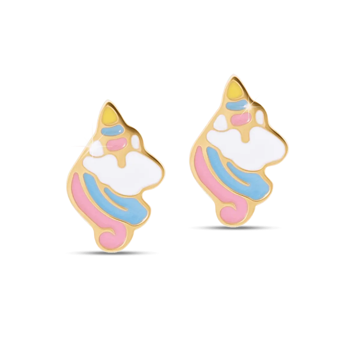 Dolcissimi orecchini anallergici a forma di unicorno dai colori pastello. Realizzati in acciaio chirurgico nickel tested con finitura dorata, combinano delicate tinte rosa, azzurre e bianche in un design sognante e magico.