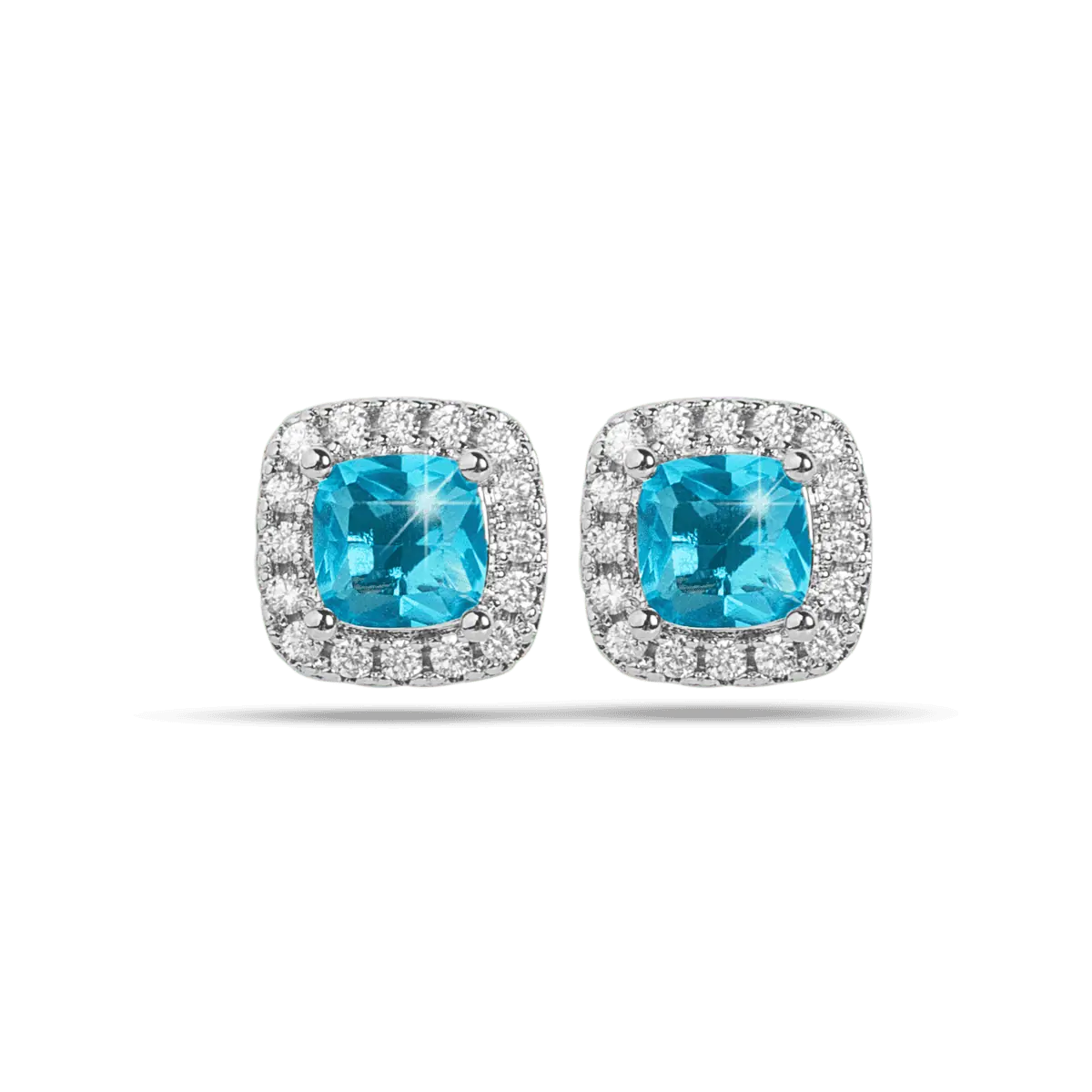 Eleganti orecchini anallergici con pietra azzurra centrale circondata da cristalli luminosi. Realizzati in acciaio chirurgico nickel tested, questi orecchini a lobo catturano la luce grazie alla loro raffinata montatura quadrata.